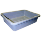 High density polyethylene.  Smooth and seamless. Nesting stops at each end prevent jamming and serve as carrying handles.